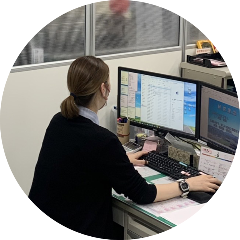 私の仕事は「営業事務」ですので、営業部が外回りで繋いでくれた他社とのやりとりや、書類作成、各種事務作業が中心となります。